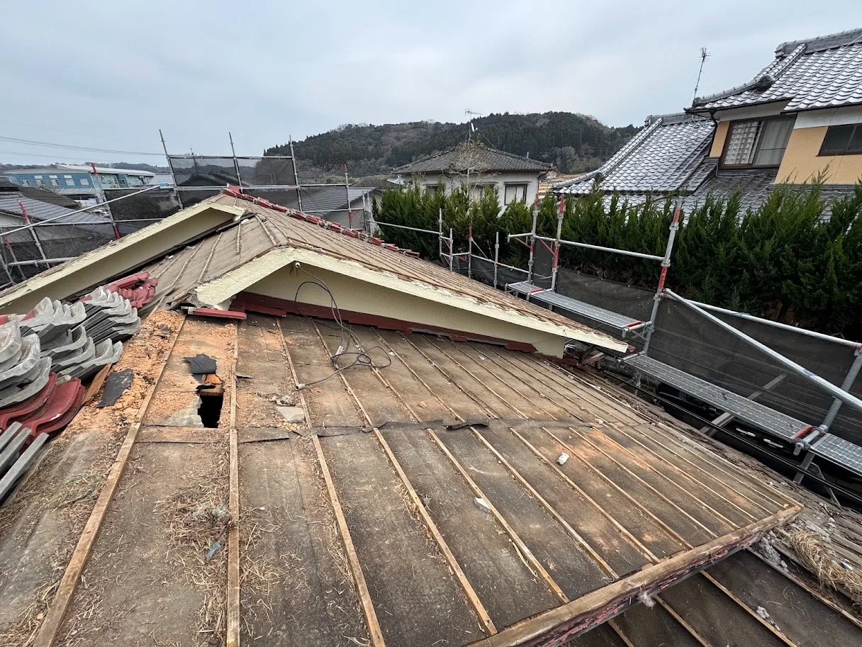 - 工事内容:屋根葺き替え(瓦からガルバリウム鋼板へ)