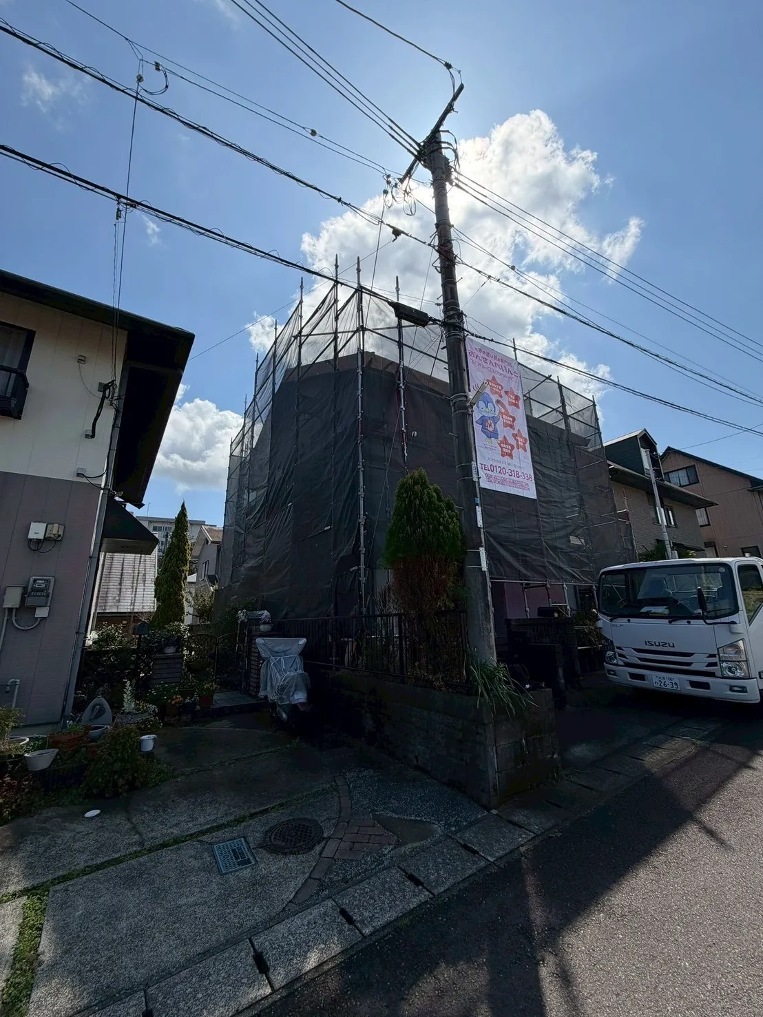 ✔ 足場+飛散防止シート設置