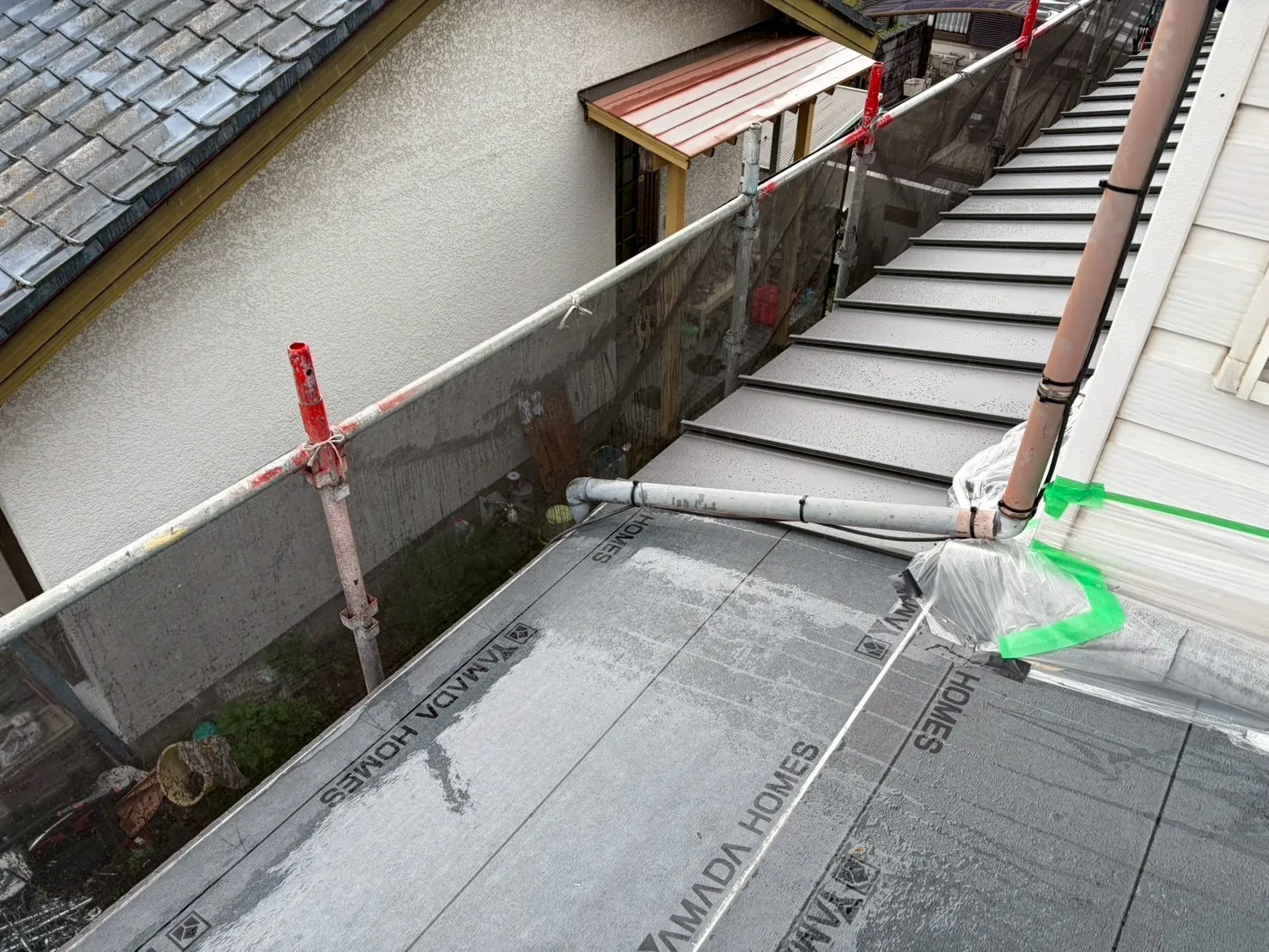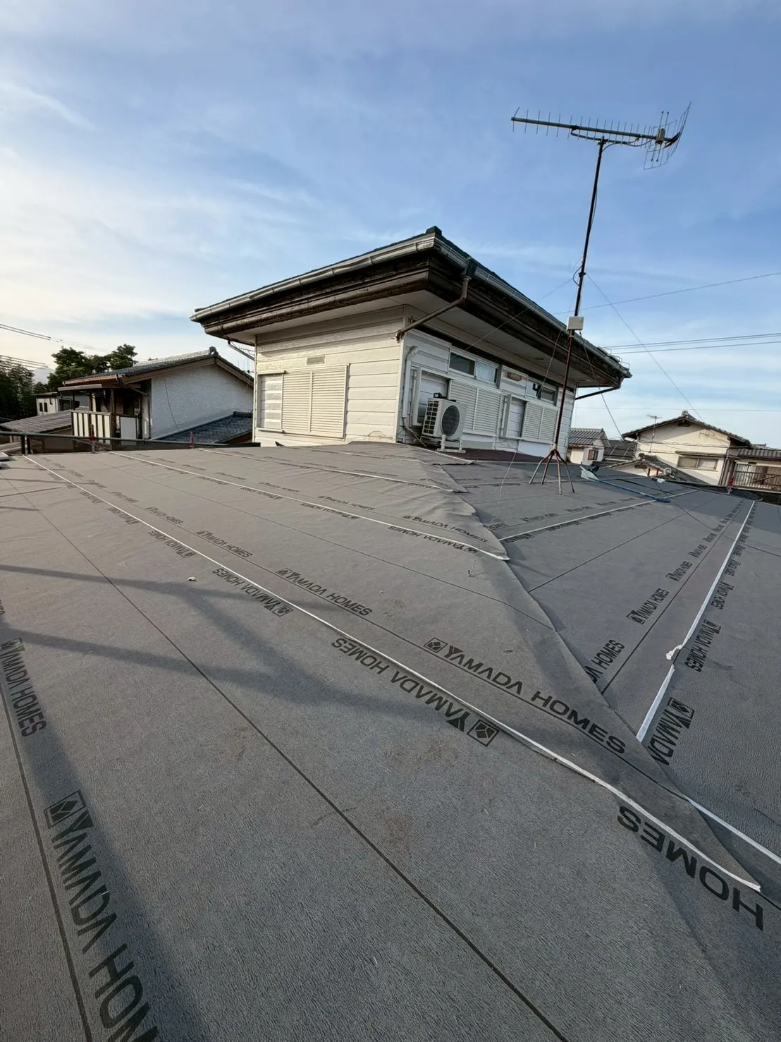 屋根全体の納まりや勾配、水の流れを確認しながら施工しています🔍