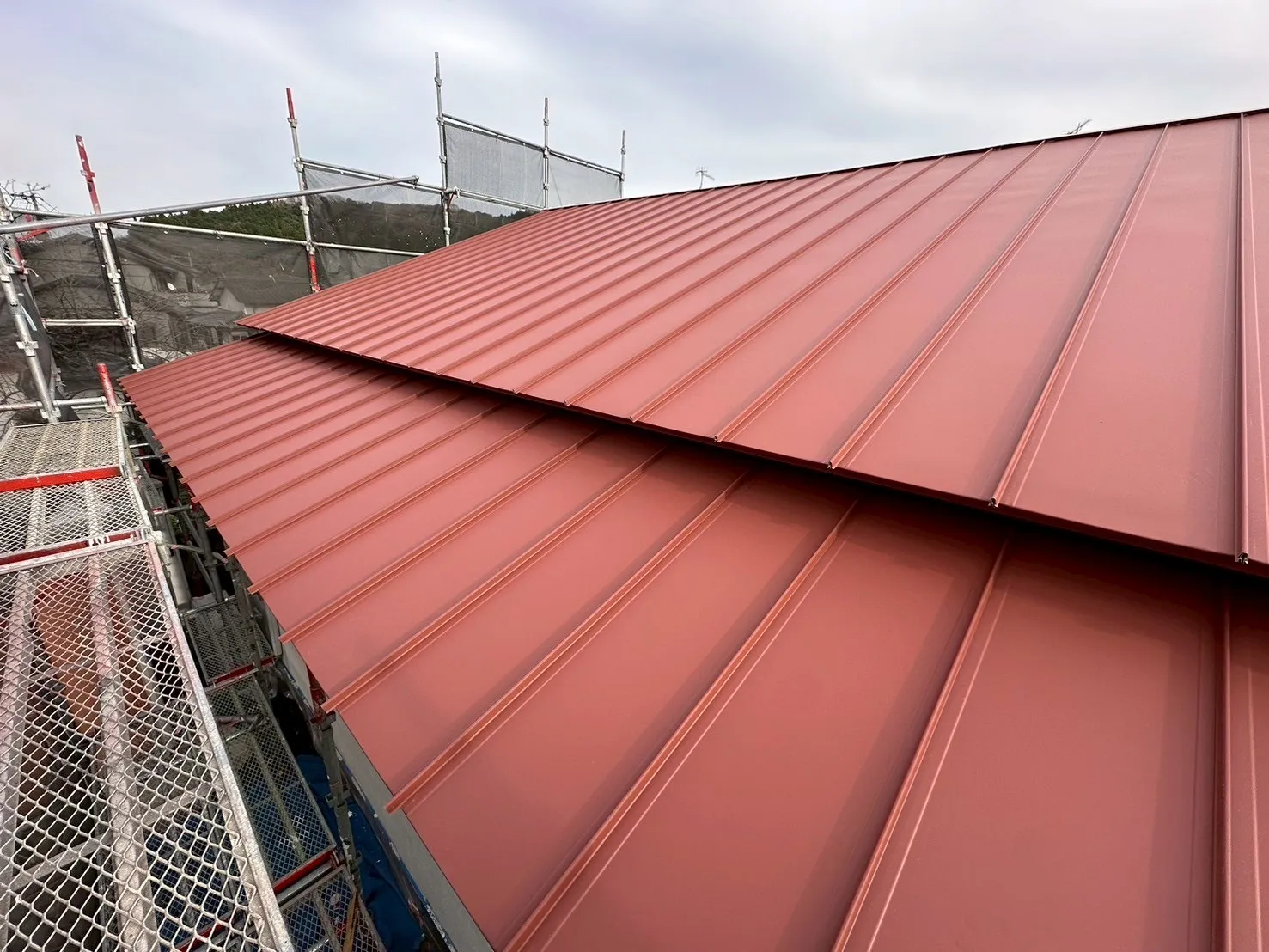 今回のリフォームでは、ガルバリウム鋼板立平葺きを採用しました。