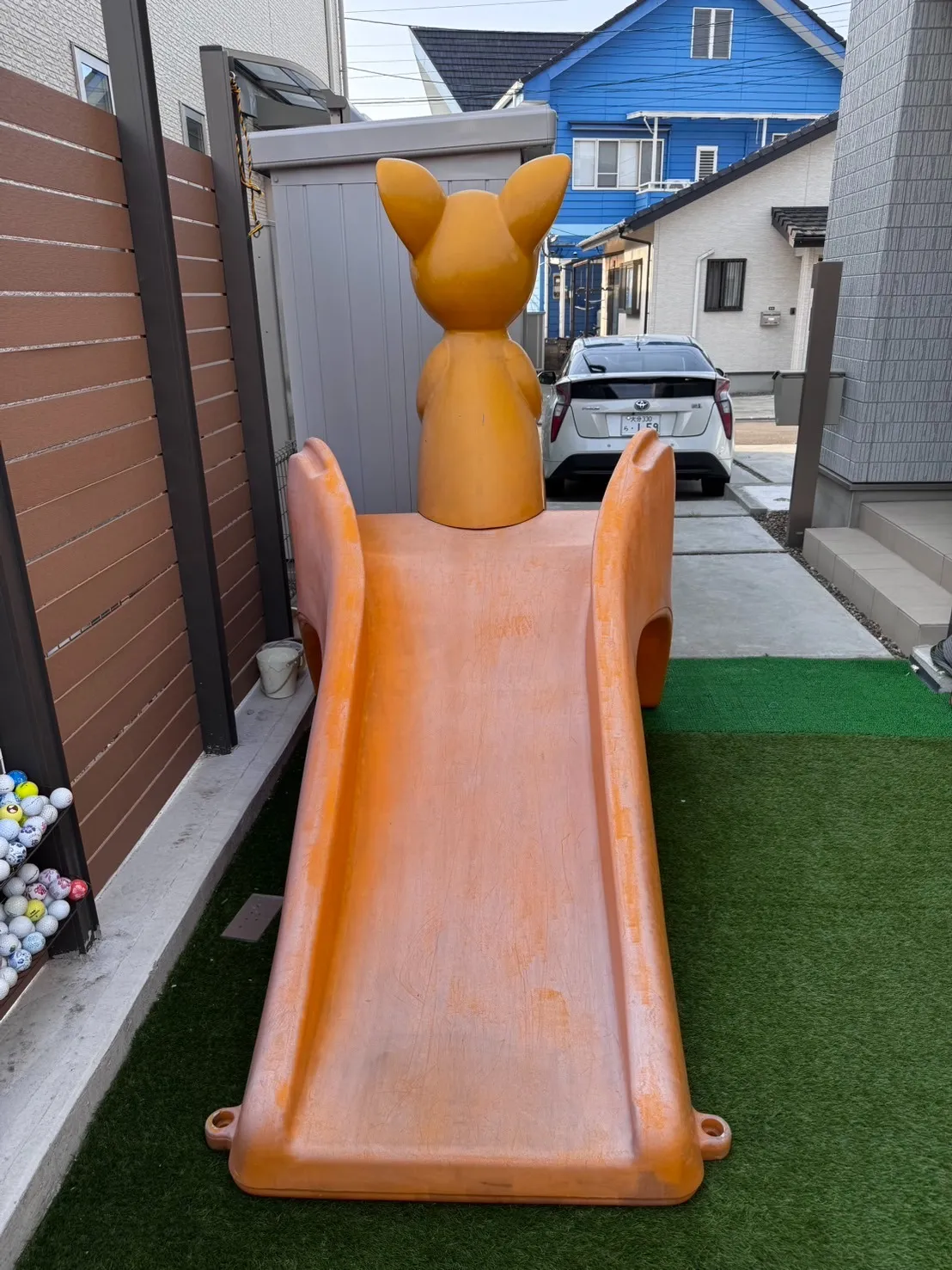 もともとはオレンジ色のかわいらしいすべり台でしたが、「経年劣化で色あせてきたので、雰囲気を変えてイメチェンしたい✨」とのご相談をいただきました。