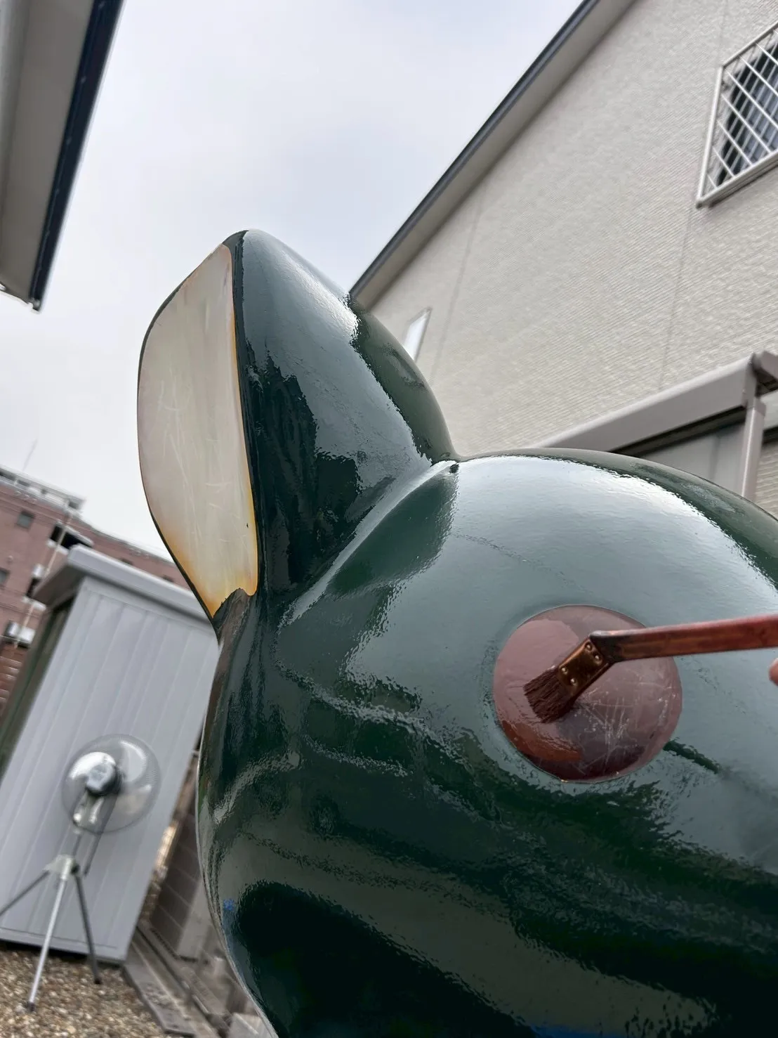 今回のすべり台は、カンガルー親子の立体造形が特徴的。細かな曲面も多いため、ローラーと刷毛を使い分けて細かく塗装しました。